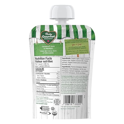 Baby Gourmet Organic Baby Food Puree Coconut, Kiwi & Spinach, 128ml (12 Pack)