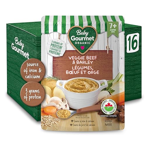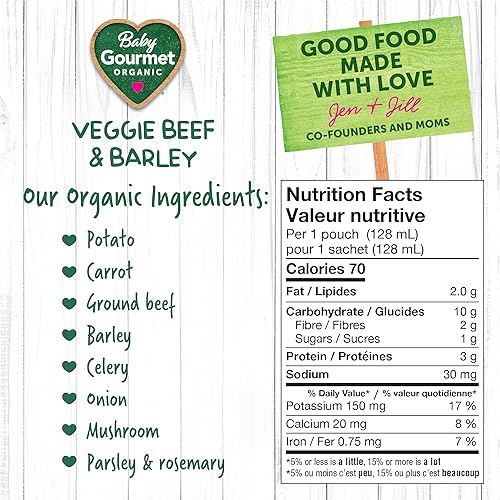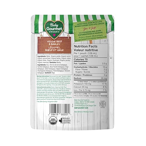 Baby Gourmet Veggie Beef & Barley, 16 × 128 mL Pouches | 7 Months+ | Organic Protein Meal | No Added Sugar or Salt | Canadian Brand