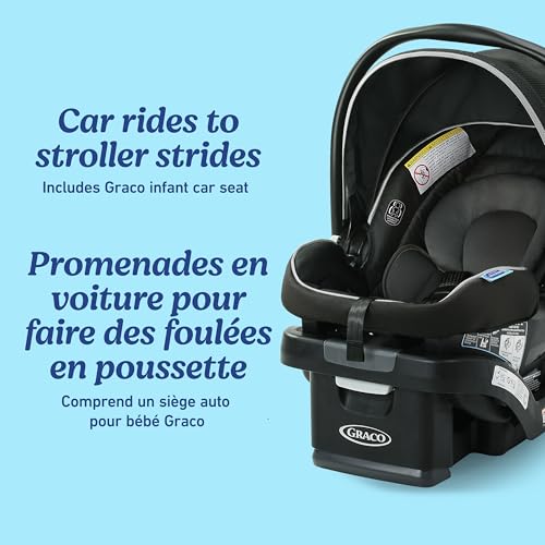 Includes the Graco SnugRide SnugLock 35 Lite Infant Car Seat, rear-facing for infants from 1.8-16 kg (4-35 lb) and up to 81 cm (32 in) for an easy transition from car to stroller