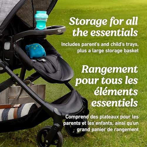 The Graco Modes Element Travel System is the 3-in-1 stroller with room for all of baby’s essentials. It converts from Infant Car Seat Carrier to Infant Stroller to Toddler Stroller for a versatile ride from infant to toddler. For even more riding options, baby can ride parent-facing or forward-facing thanks to a reversible stroller seat. The travel system includes the Graco SnugRide SnugLock 35 Lite Infant Car Seat, rear-facing from 1.8-16 kg (4-35 lb), for seamless transition from car to stroller. With Modes Element Travel System, you can take your necessities with you—a parent’s tray with cup holders and removable child’s tray with cup holders keep drinks and snacks at hand. A large storage basket holds child and parent essentials so you can stroll with everything you need. And whether you’re traveling or home for the day, a self-standing stroller fold ensures easy storage.