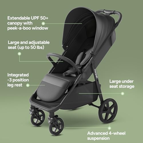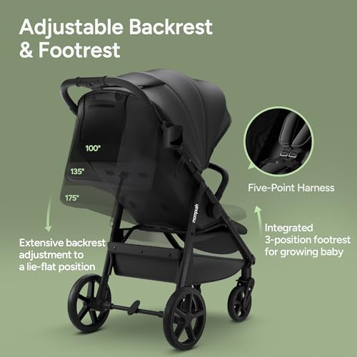 Mompush Nova Baby Stroller, Spacious Seat & Lie-Flat Mode, Infant Stroller with Large UPF 50+ Canopy, Compact Folding with One Hand, Suit for Birth to 50 LB