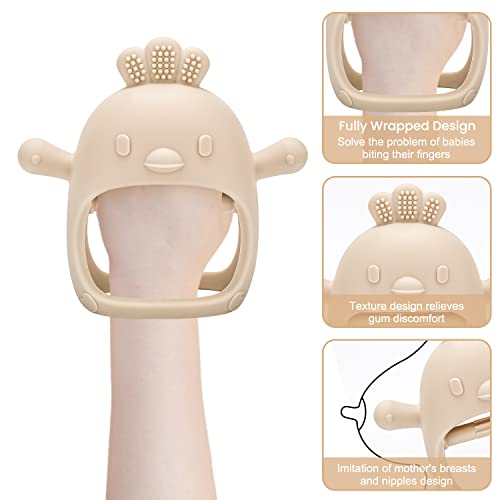 SOOTHE BABY SORE GUMS:Imitate pacifier&nipple shape, and the soft silicone touch point massage granules privide the teething pain relief and satisfy different bite experiences. the cute chick glove silicone teether improve baby’s teeth occlusion ability, it will helps gum stimulation and teeth growth.