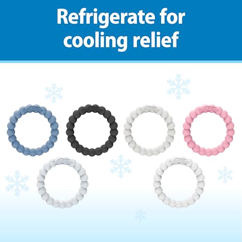 Help soothe baby’s sore gums with Dr. Brown’s Flexees Beaded Teether Rings, made of soft and durable 100% silicone. The lightweight silicone teething beads are easy for little fingers to grip and allow baby to self-soothe. Provide gentle comfort and relieve teething pain with this chic baby teething toy, available in black, white, gray, pink, and blue. Use as a cold teether by placing the teething rings in the refrigerator on extra sore days to provide cooling relief. This silicone teething ring is BPA free, dishwasher (top rack) safe and sterilizer friendly. Intended for use 3m+. Sold in packs of 3.