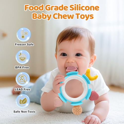 Silicone Baby Teething Toy for 3–12 Months, Soft Fruit-Shaped Infant Teether Ring for Sore Gums Relief, BPA-Free Sensory Chew Toy, Ideal Baby Shower Birthday Christmas Gift, Blue
