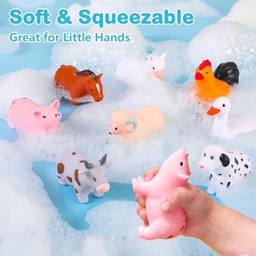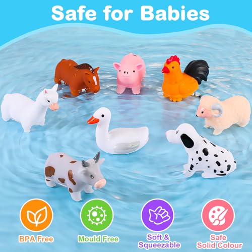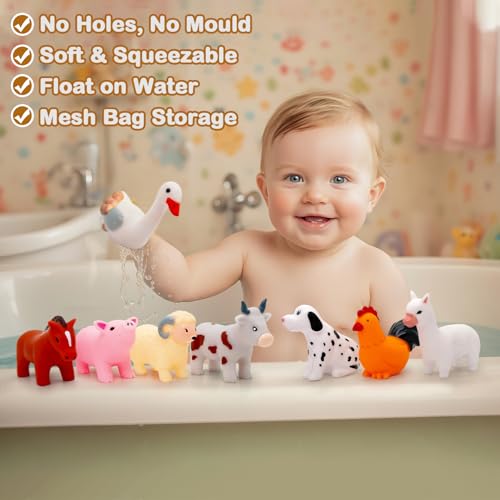 8 Pcs Set with Mesh Bag: Get fantastic value with a full set of 8 unique farm animal bath toys! The included, fast-drying bath toy storage mesh bag makes cleanup simple and storage tidy. Perfect 1 2 3 year old girl boy gifts!