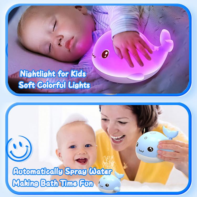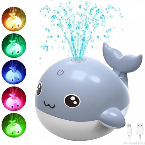 Baby Whale Bath Toy, USB Rechargeable Bath Fountain Toy 6-12 12-18 Months, Light Up Bath Toys Sprinkler, Spray Water Pool Bathtub Toys for Toddlers 1-3 2-4 Infant Kid Baby 2 3 4 5 Shower Gifts