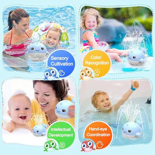 【Educational & Sensory Stimulation】 The Spray Water Whale introduces babies to various colors, aiding in color recognition and enhancing cognitive skills. Its colorful lights and refreshing water spray engage your baby’s senses, fostering sensory development and promoting intellectual and motor skills growth. Perfect baby bath toys for toddlers 1-3.