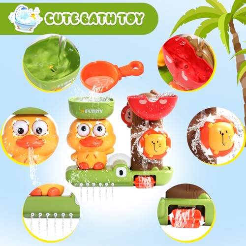 Bath Toys for Toddlers 1-3 Baby Bath Toy 6-12+ Months 1 Year Old Toys Bath Toys for Kids 3-5 with Gears & Cups Duck Water Bathtub Sensory Toys for Toddlers 1+ Year Old Boys Girls