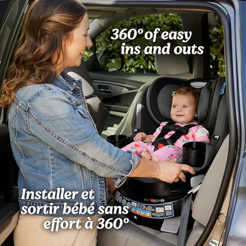 Rotates 360° with one hand from both rear-facing and forward-facing mode to easily get your little one in and out of the seat; listen for it to “click” back into position for a safe and comfy ride