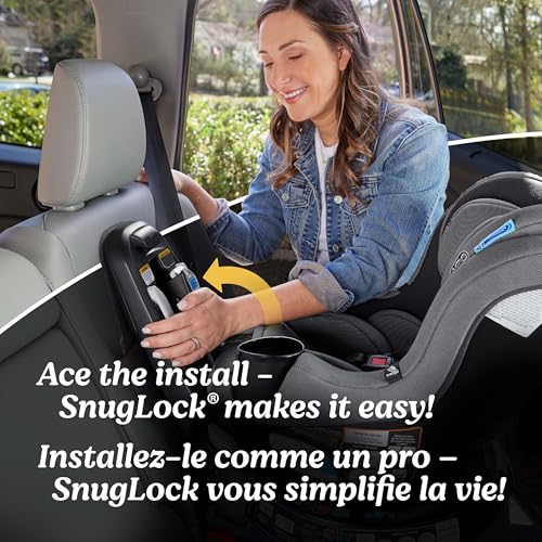 The safest seat is one that’s installed correctly—SnugLock technology makes it quick and easy to install in less than one minute* with vehicle seat belt or UAS *Based on average time to buckle or UAS, remove slack, and lock for secure install