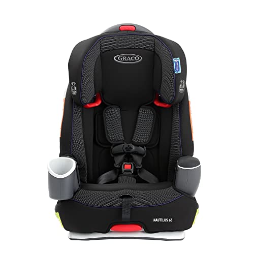 The Graco Nautilus 65 3-in-1 harness booster car seat can be used from toddler to youth, keeping your growing child safe. It secures your child in a 5-point harness from 20-65 lb, converts to a highback booster from 40-100 lb, and becomes a backless booster seat from 40-100 lb. Its Simply Safe Adjust harness allows you to adjust the harness and headrest together as your child grows, with no time-consuming rethreading. You’ll appreciate the strength of the steel-reinforced frame and 3-position recline for comfort and fit while your little passenger enjoys a personal cup holder and storage compartment.