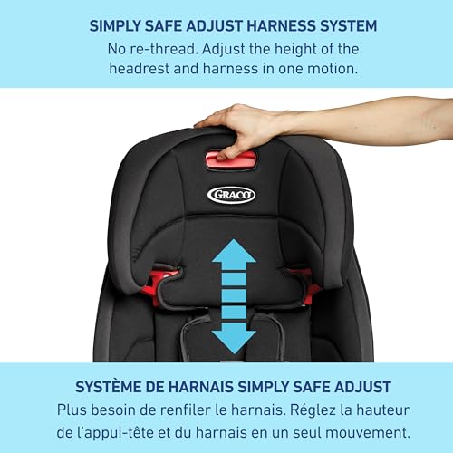 The Graco Tranzitions 3-in-1 Harness Booster Car Seat is designed to grow with your child and go with you, wherever your journeys take you—from car to carpool and beyond. This lightweight toddler carseat transitions seamlessly from harness booster 10-30 kg (22-65 lb) to highback booster 18-45 kg (40-100 lb) to backless booster 18-45 kg (40-100 lb) and features the Simply Safe Adjust Harness System, which adjusts your harness and headrest to 8 height positions, with no rethreading. It features two removable cup holders to keep your child happy, and a machine washable seat pad, body insert, and harness covers.