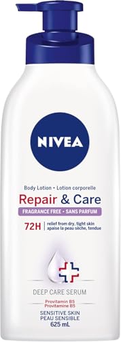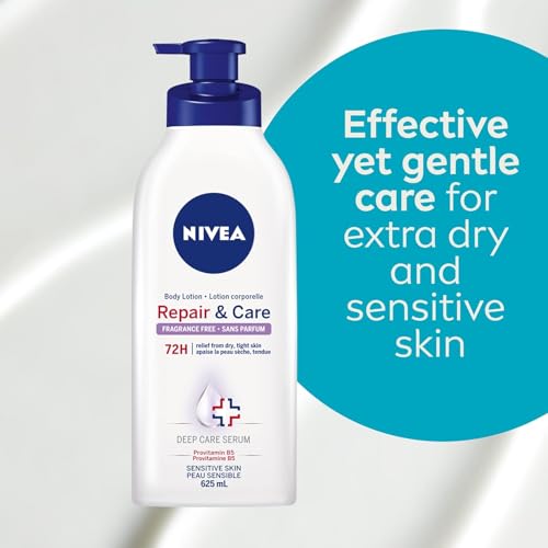 NIVEA Repair & Care Fragrance-Free Body Lotion | Long lasting | 72H Hydration | For Dry Tight and Sensitive Skin|Unscented Daily Moisturizier | Fast absorbing| 625mL pump bottle