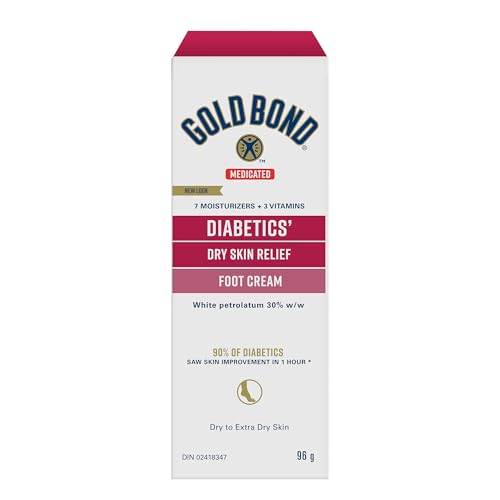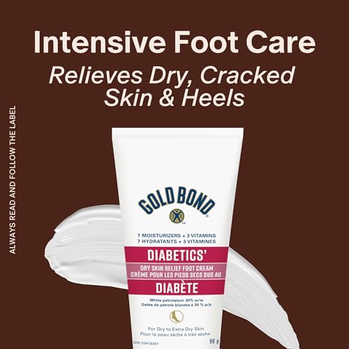 Gold Bond Medicated Diabetics’ Dry Skin Relief Foot Cream, 96g Tube, Foot Cream for Dry Cracked Feet With 30% White Petrolatum, Vitamins A and E for Fast, Long-Lasting Dry Feet and Heels Relief