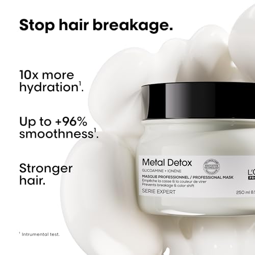 L’Oréal Professionnel Metal Detox Hair Mask for Color Treated, Dry, Damaged Hair, Anti-Metal, Serie Expert, Clarifying, Detoxifying, Prolongs Color, Adds Softness – 250ml