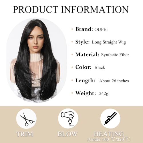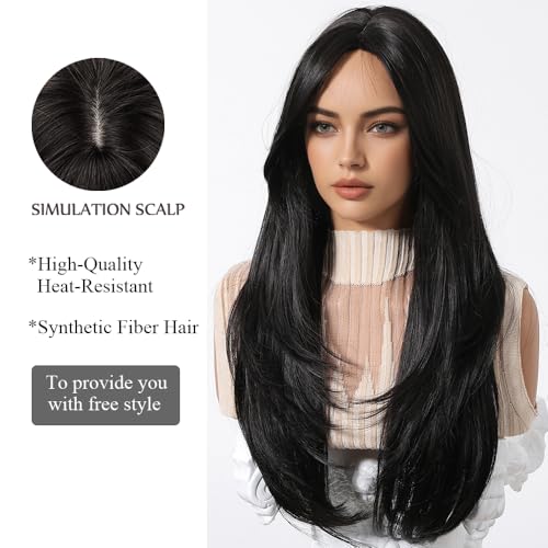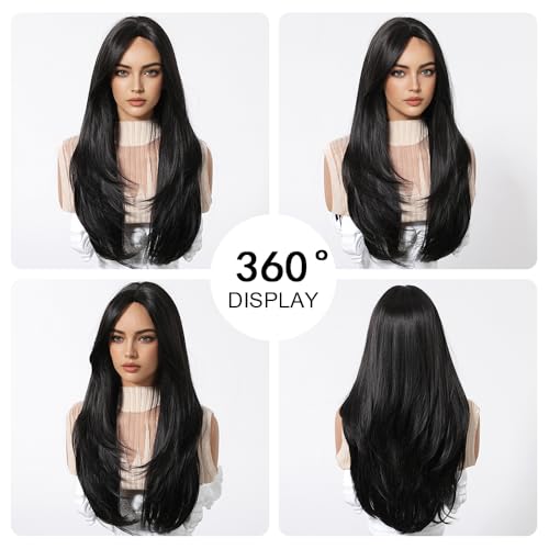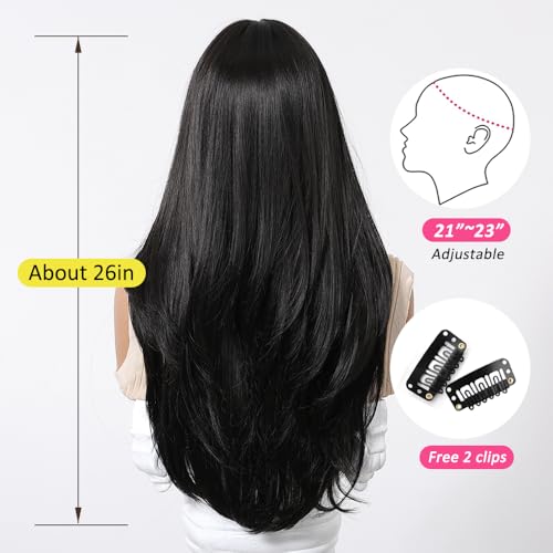 Black Wigs for Women Long Wig with Bangs Natural Straight Wigs Synthetic Hair Heat Resistant Wigs for Daily Party Cosplay Wear