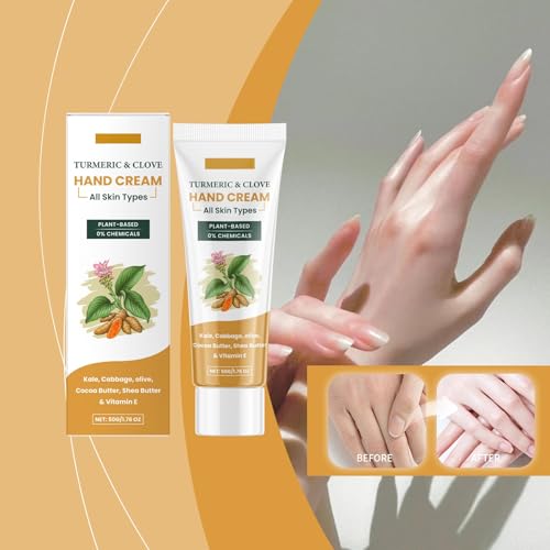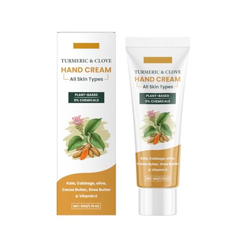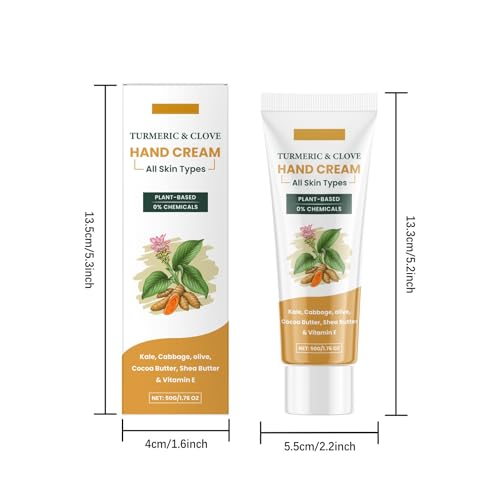 Turmeric and Clove Oil Hand Cream, Whitening and Hydrating Hand Cream, Fades Dark Spots, Brightens Skin, Treats Hand Aging, Dryness, and Cracking | Travel Size, 1.76 oz