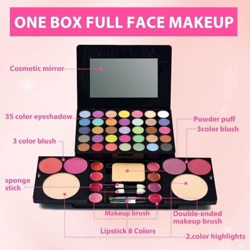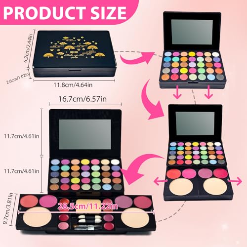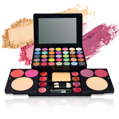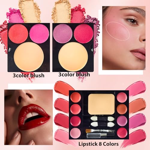 Makeup Palette Set, Full Makeup Kit for Women Multipurpose Professional Box, High Pigment Include Eyeshadow Palette Powder Lipstick Blush Pallet Kit with Mirror, Applicators