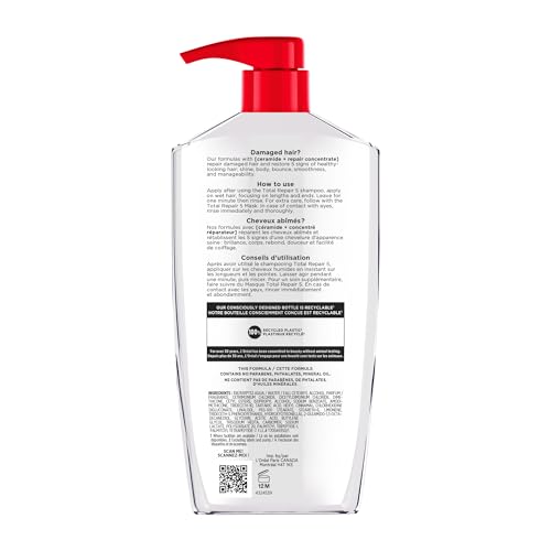 Care for your damaged hair with the Total Repair 5 Restoring Conditioner. Enriched with Ceramides and Repair Concentrate, the powerful best-in class formula of the Total Repair 5 Conditioner repairs damaged hair and restores 5 signs of healthy-looking hair: shine, body, bounce, smoothness, and manageability.