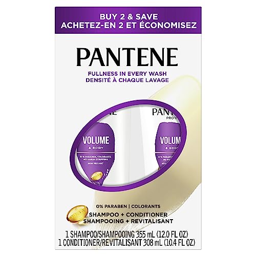 CLEANSES & VOLUMIZES SHAMPOO: Give your hair the ultimate boost. Pantene Pro-V Sheer Volume Shampoo is designed to give your hair the lift and fullness it craves. It hydrates while it lifts to ensure your hair looks healthy and ready for head-turning styling. Gently cleanses hair to remove buildup and reveal noticeable volume, lift, and control when styled. Pair with Volume & Body Conditioner and Volume Body Boosting Mousse for 72-hour fullness and unbelievable body. Our new and improved silicone-free formula offers 72-hour fullness* and two times the pro-vitamins for luxury repair results without the luxury price tag. This nutrient-rich formula is packed with antioxidants and two times the amount of pro-vitamin B5 to help strengthen existing hair bonds and build new ones. Lift your spirits and your follicles with the scent of creamy berries. Perfect for use on fine or thin hair. Crafted to cleanse all hair types and is gentle enough for use on permed or color-treated hair. Free of parabens and colorants for no harsh stripping. HOW TO USE: Gently massage into wet hair. Focusing on the scalp and roots, work into a rich lather. Pull lather through to the ends of your hair. Rinse thoroughly. Repeat these steps if you’re going multiple days between washes for lasting freshness. For best results, continue with the Sheer Volume 72 HR Fullness Conditioner for root-lifting volume. CONDITIONER: Take conditioning to new heights with Pantene Pro-V Sheer Volume Conditioner, designed to give your hair the lift and fullness it craves. Gently cleanses hair to remove buildup and reveal noticeable volume, lift and control when styled. Our volume-boosting conditioner hydrates while it lifts to ensure your hair looks healthy and ready for head-turning styling. Pair with Volume & Body Shampoo and Volume Body Boosting Mousse for 72-hour fullness and unbelievable body. Our new and improved formula offers 72-hour fullness* and two times the pro-vitamins for luxury repair results without the luxury price tag. This nutrient-rich formula is packed with antioxidants and two times the amount of pro-vitamin B5 to help strengthen existing hair bonds and build new ones. Lift your spirits and your follicles with the scent of creamy berries. Perfect for use on fine or thin hair. Crafted to hydrate all hair types and is gentle enough for use on permed or color-treated hair. Free of parabens and colorants for no harsh stripping. HOW TO USE: Use with every hair wash. After shampooing, dispense a generous amount of conditioner and gently massage into wet hair starting at the tips where hair is most damaged. Work through upwards to saturate the rest of the strands. Leave in for 1-2 minutes before rinsing thoroughly. Tip: Use more product on longer, thicker hair.