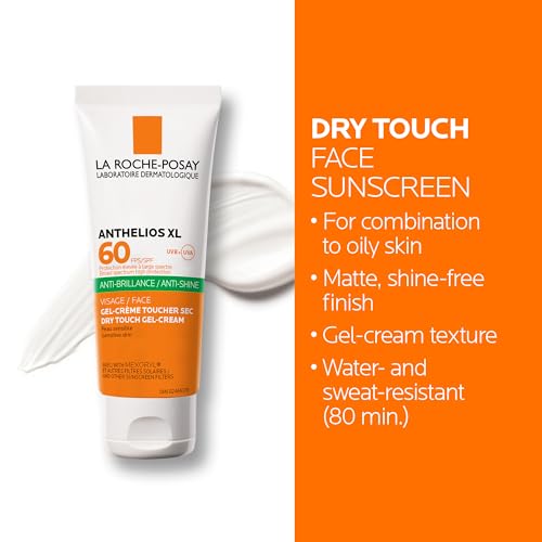 La Roche-Posay Anti-Shine Mattifying Face Sunscreen, Anthelios Dry Touch Anti-Shine Sunscreen Broad Spectrum SPF 60 with Silica, Vitamin E & Perlite, Oil Free, Non Greasy, Oxybenzone Free, Paraben Free, Travel Size, Dermatologist Recommended, 50ml