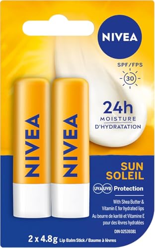 NIVEA Sun Lip Balm with SPF 30 (2×4.8g) | Protect Against Sun Burn Lip Balm, 24H Hydration