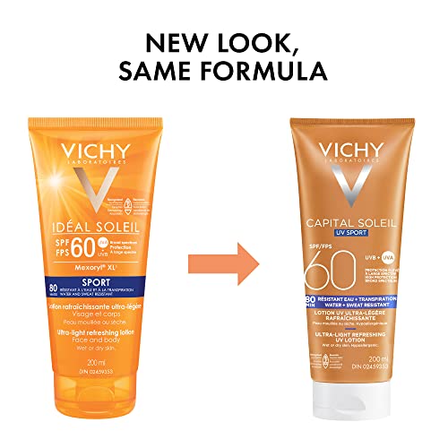 Vichy Water & Sweat Resistant Face & Body Sunscreen, Capital Soleil SPF 60 Ultra Light, Hydrating & Non-Greasy UV Lotion with Broad Spectrum UVA-UVB Protection, Hypoallergenic & Fragrance-Free, 200ml
