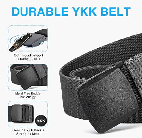 CHAOREN Nylon Elastic Belt Men, 1.5″ Stretch Mens Belt with Plastic Buckle TSA Approved, Tactical Belt for Work Casual Jeans