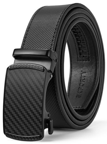 Mens Belt Leather with Automatic Buckle Adjustable Ratchet Belts for Men Dress Casual Jeans Trim to Fit