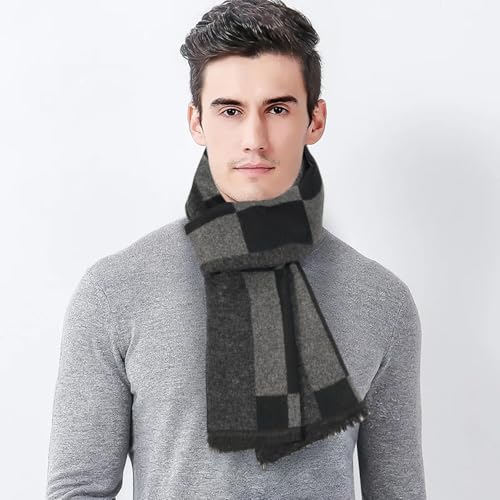 Men Scarf for Winter,Mens Winter Scarf Cashmere Scarf for Windowpane Designs Selection Husband Father Gift