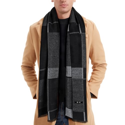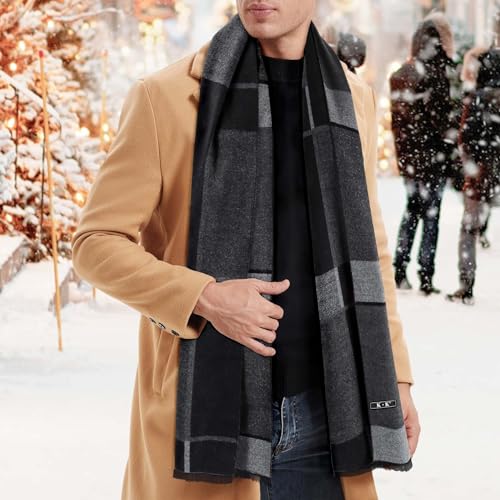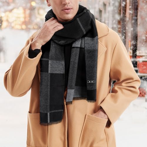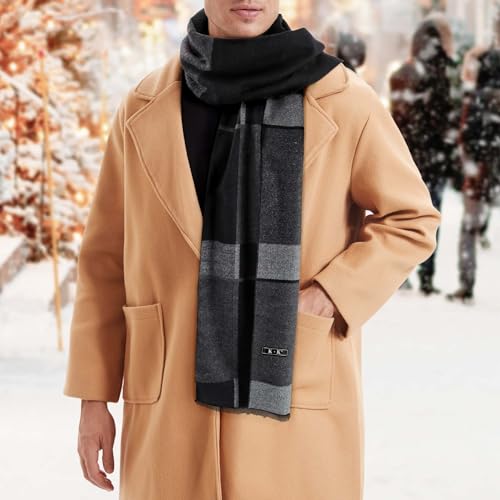 Men Scarf Winter – Men Warm Tartan Scarves Classical Cashmere-like Plaid Knitted Long Scarf Shawl Neck Wrap