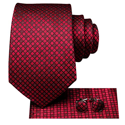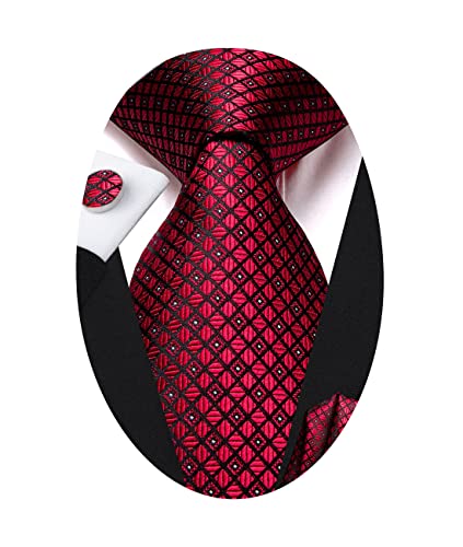Hi-Tie Men’s 63 Inches Extra Long Tie and Silk Pocket Square Necktie Set with Cufflinks Formal Party Wedding