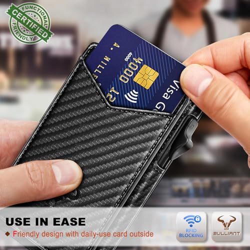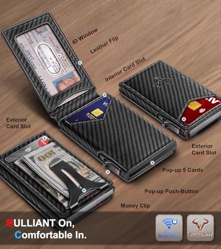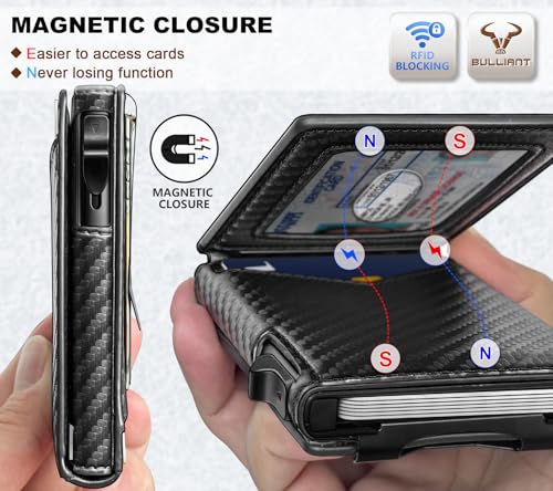 BULLIANT Men Wallet-Money Clip Wallet Slim Gift for Men 9Cards-Metal Credit Card Case in Magnetic Leather Flip