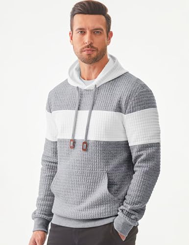 JMIERR Men’s Hoodies Waffle Sweatshirt with Pocket Casual Long Sleeve Outdoor Drawstring Pullover Sweaters