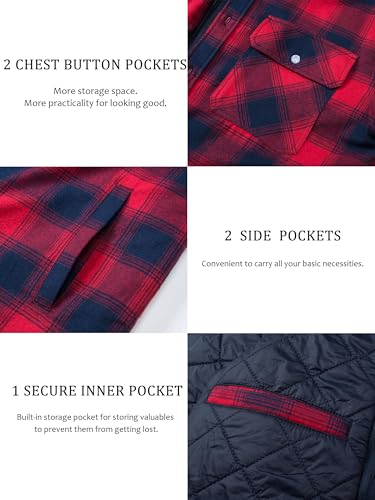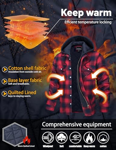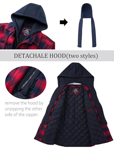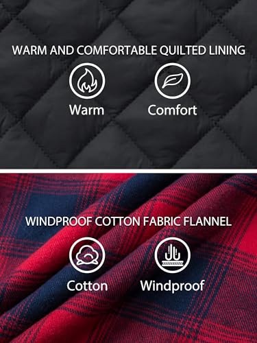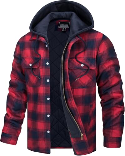 TACVASEN Men’s Flannel Shirt Button Down Plaid Shirts with Hood Quilted Lined Casual Shacket Mens Winter Cotton Shirt