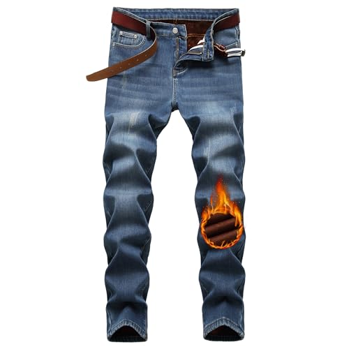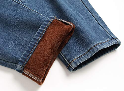 Mens Thermal Fleece Lined Winter Slim Fit Thickened Stretch Warm Denim Jeans