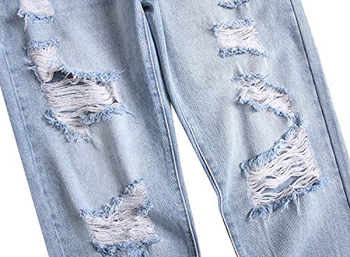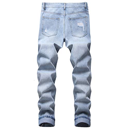 QIMYUM Mens Ripped Jeans, Distressed Destroyed Slim Fit Straight Leg Denim Pants