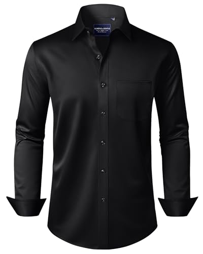 Alimens & Gentle Men’s Dress Shirts Long Sleeve Stretch Wrinkle-Free Formal Solid Button Down Shirt with Pocket
