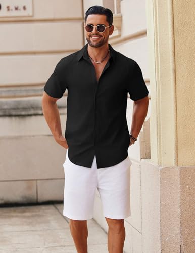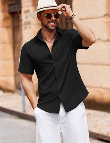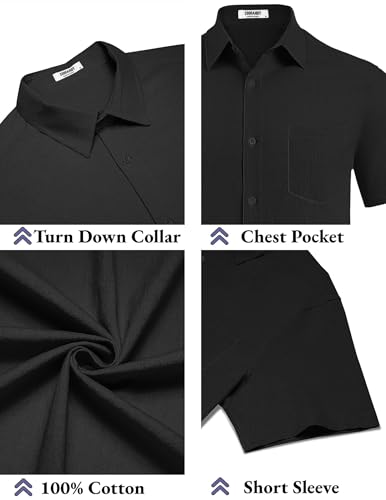 COOFANDY Men’s Button Down Shirts Short Sleeve Casual Cotton Summer Beach Wedding Shirts