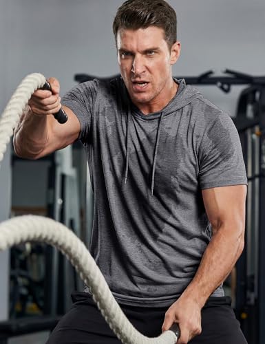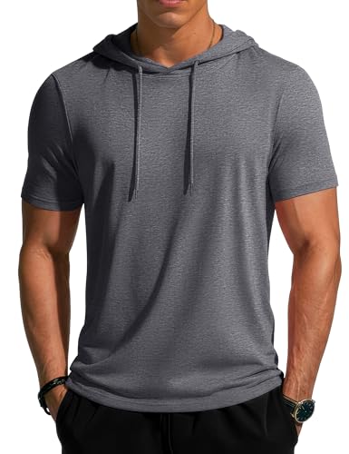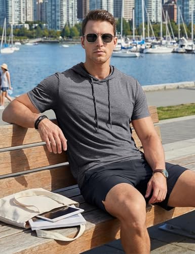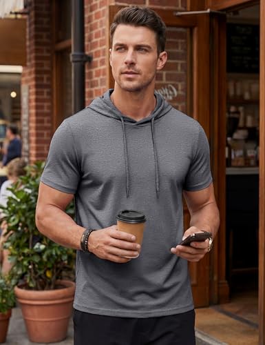MAGCOMSEN Short Sleeve Hoodie for Men Gym to Street Tshirt Muscle Regular Fit Sweatshirts Lightweight Cotton Hooded Tops