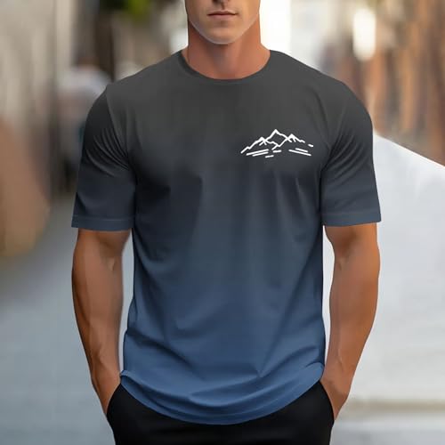Men’s Short Sleeve T-Shirts Gradient Mountain Graphic Tees Shirts Summer Casual Cotton Tshirts Tops