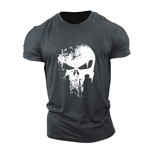 ReedCA Punishment Skull – Mens Bodybuilding T-Shirts Fashion Casual Fitness Tee Slim Fit Gym Short Sleeve
