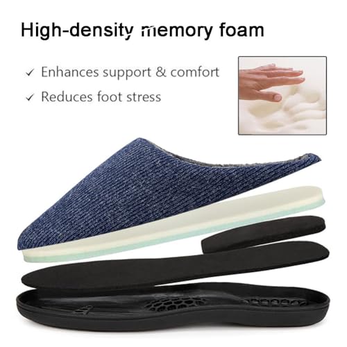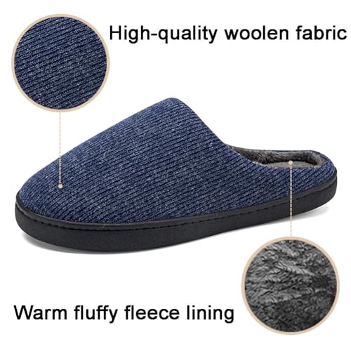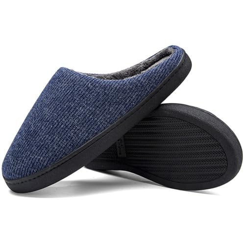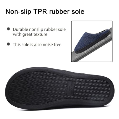EASYLEE Men’s Slippers with Memory Foam, Warm Soft Plush Fleece Lining House Shoes, Anti-Skid Durable Rubber Sole Slippers for Men Home Indoor Outdoor