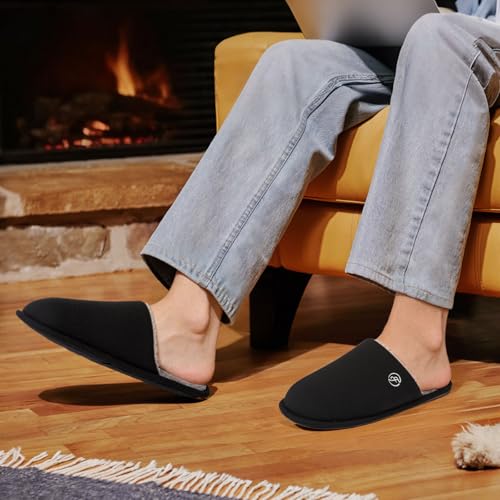EverFoams Men’s Cotton Knit Slippers Lightweight Memory Foam Indoor House Shoes with Anti-Skid Sole