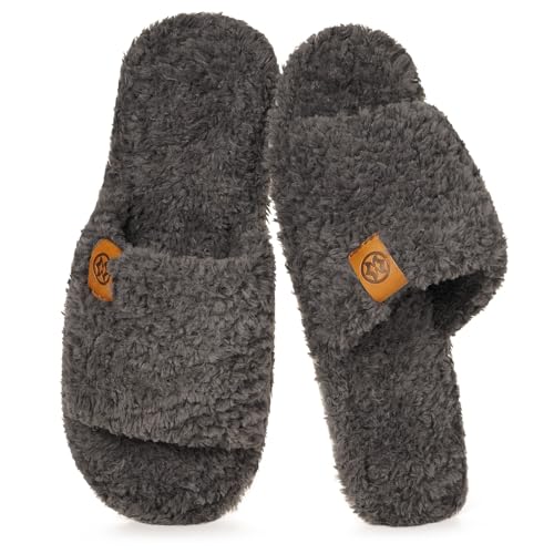 Fuzzy Open Toe Slippers for Men Soft Memory Foam Indoor House Shoes Slip On Cozy Bedroom Slippers Lightweight Non-Slip Home Slides