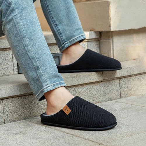 VeraCosy Men’s Cozy Slip-on Slippers Corduroy Memory Foam Indoor House Shoes