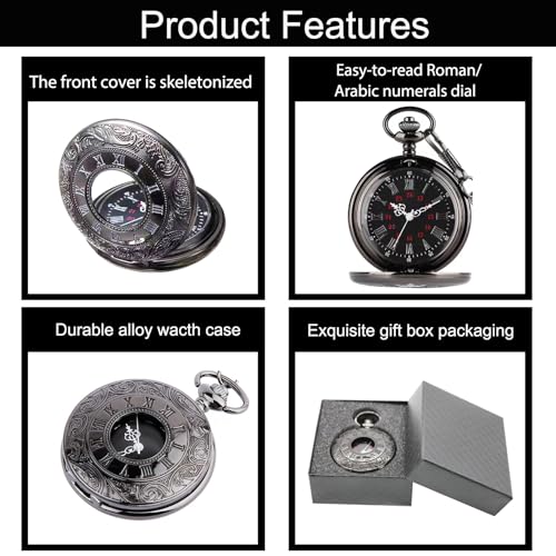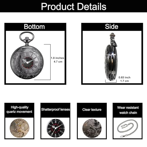 SIMAOTE Vintage Quartz Pocket Watch Men’s Classic Steampunk Pocket Watch with Chain/Roman Numerals Dial/Gift Box