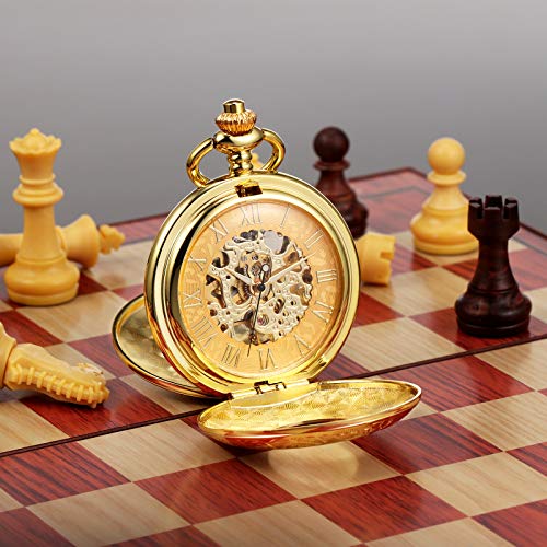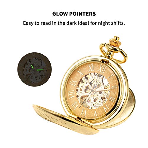 TREEWETO Men’s Mechanical Roman Numerals Dial Skeleton Pocket Watches with Gift Box and Chains for Mens Women