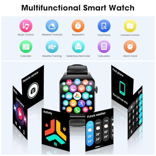 Message Notification & Powerful: Experience the convenience of our powerful smartwatch that can call and text without needing your phone. Stay updated with SMS and app notifications from platforms like Facebook, WhatsApp, Instagram, Telegram, TikTok, and Skype. This smart watch for android and iphone compatible offers medication reminders, weather forecasts, music and camera control, alarms, stopwatch, timer, breathing exercises, and a find phone function. Note: You cannot reply to messages directly on the watch.