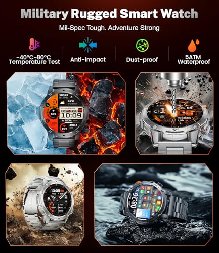 Military Outdoor Standard, IP68 Waterproof: The indestructible smart watch has passed MIL-STD-810H certification, undergone over 20 extreme tests, and its pressure resistance has been increased by 300%, making it able to withstand extreme environments such as shock and abrasion and features a IP68 waterproof design